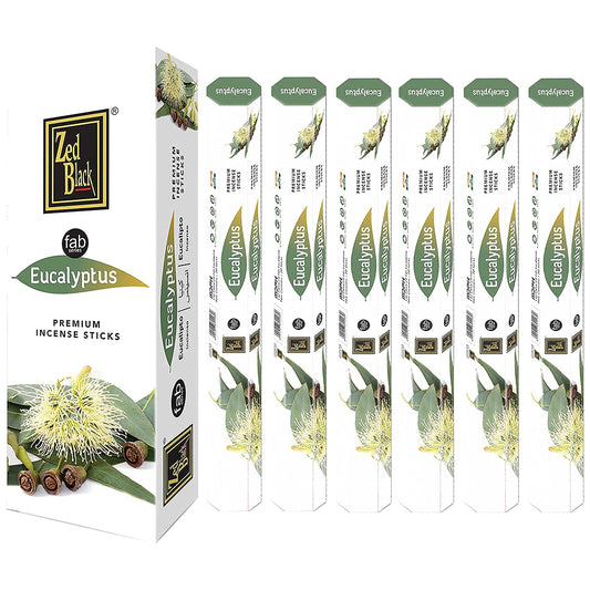 ZED BLACK Premium Eucalyptus Natural Incense Sticks - 20 Sticks Per Box & 6 Boxes Inside (Total 120 Sticks) - Use It at Home or Workplace Alluring Aroma Sticks