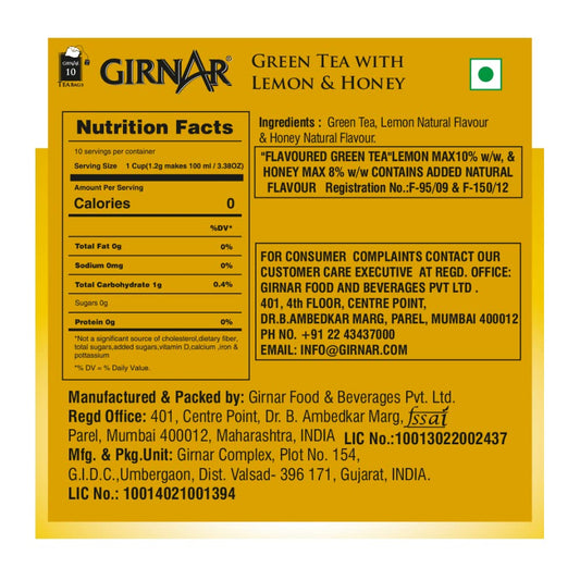 Girnar Green Tea Bags with Lemon & Honey (36 Tea bags)