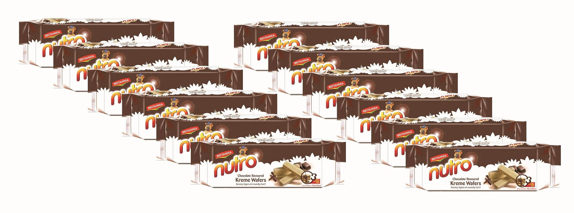 BRITANNIA Nutro Chocolate Cream Wafers 2.64oz (75g) - Healthy Breakfast & Tea Time Snacks - Dessert Chocolate Cream Wafer - Suitable for Vegetarians (Pack of 12)