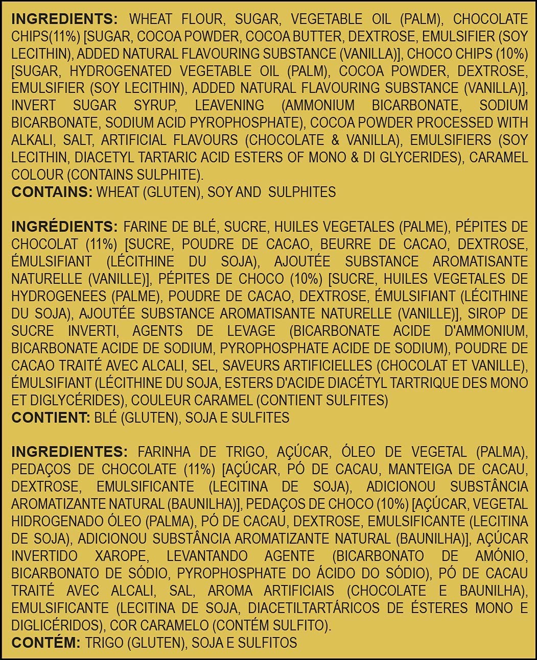- The flavorsome Choco chips are blended into the crunchy cookie. Treat yourself or someone special with Choco Chips in every bite. Britannia Choco Chip cookies are kids favorite and healthy snacks made with wholesome ingredients for when you need a sweet treat.