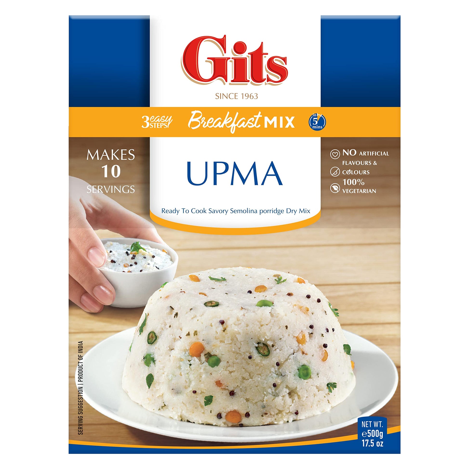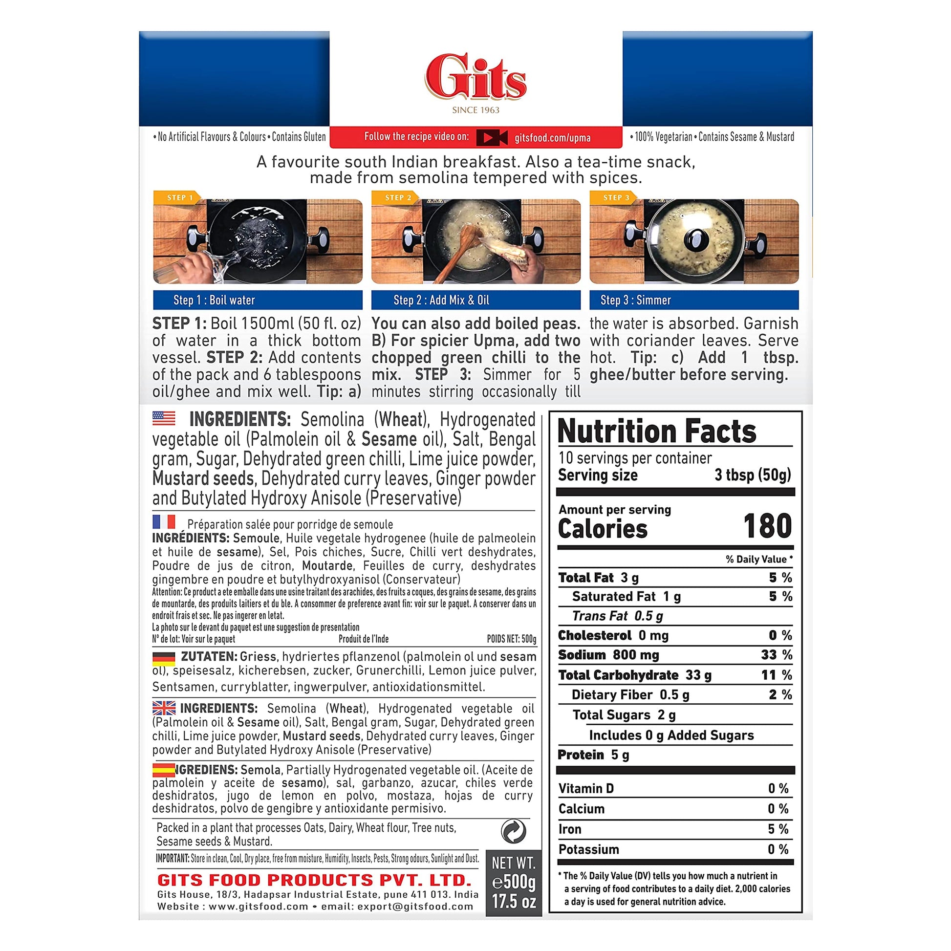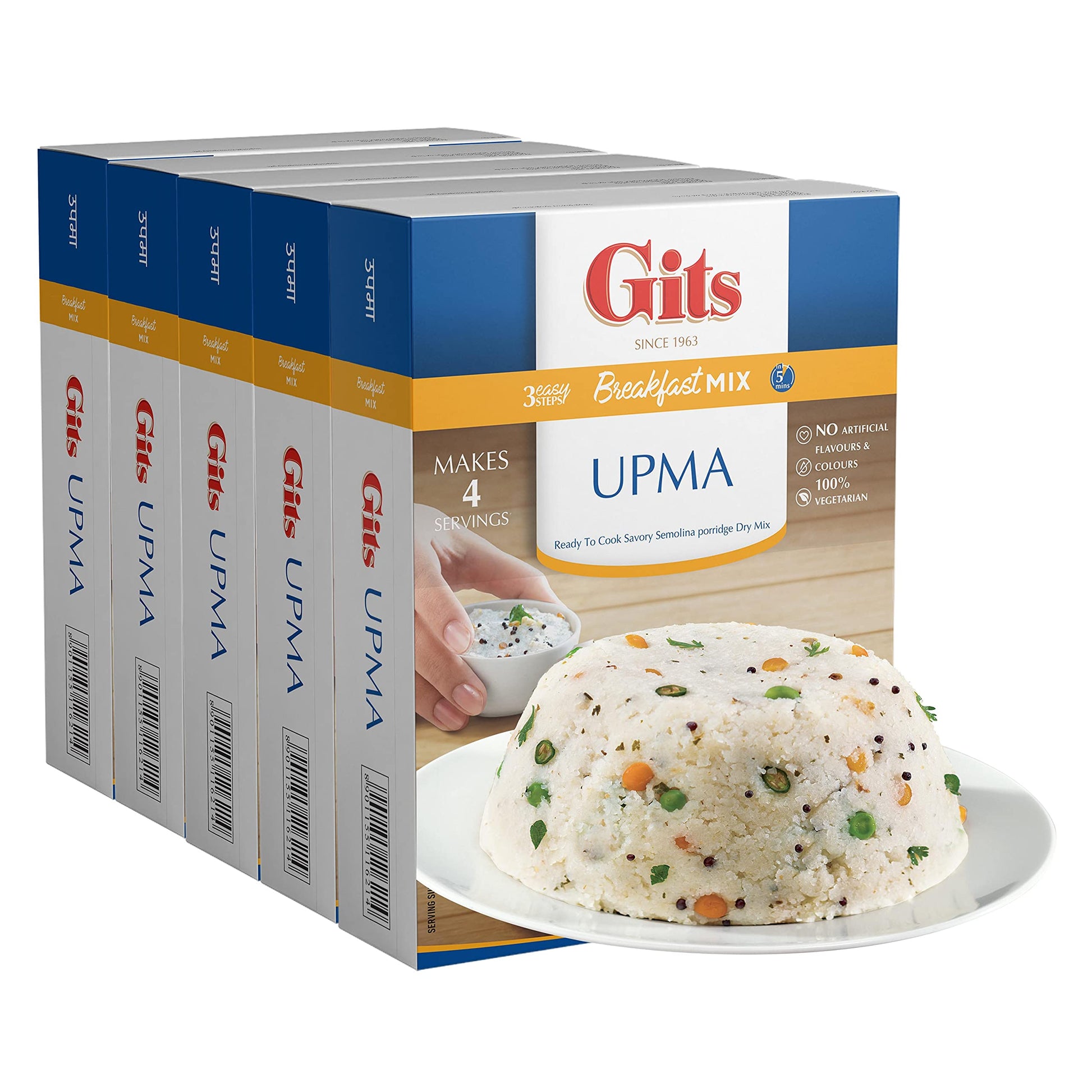Gits Upma mix 87.5 Oz (Pack of 5X17.5 Oz each) Ready to Cook Indian Breakfast, Snack Meal | 100% Vegetarian, Easy Recipe, No Artificial Colors, Flavors, Preservatives. Vegan