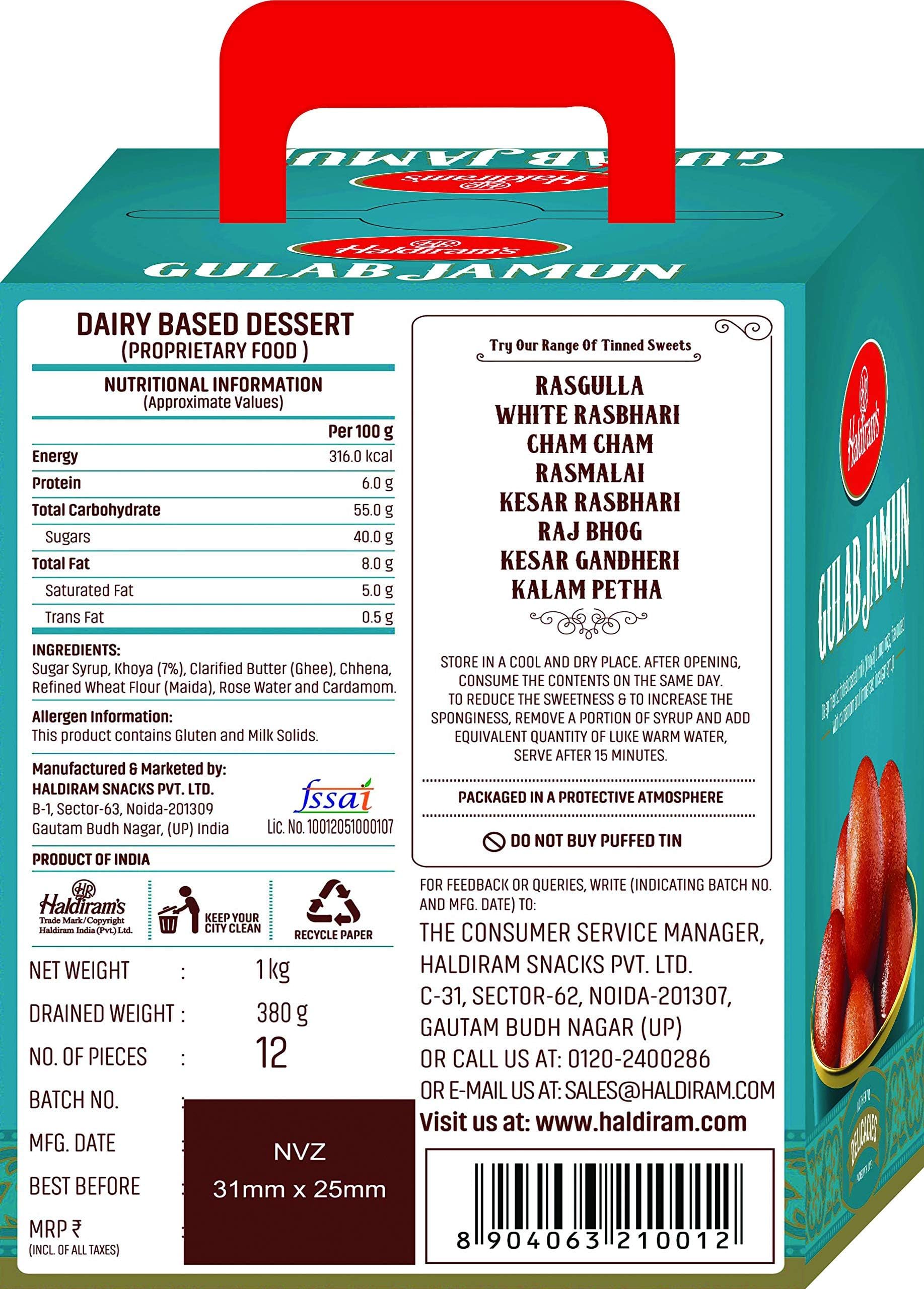 - 12 nos of pcs in 1 Kg Gulab Jamun TIN