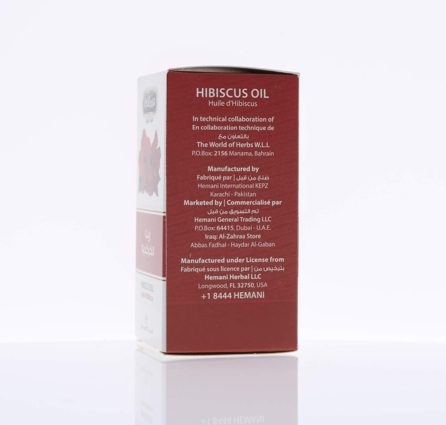 Hemani Hibiscus 100% Natural Cold Pressed Halal Essential Oil.It contains all natural ingredients.It Promotes hair growth and hair conditions,Reduces itchiness of the scalp,Eliminates premature hair growth,Treats dandruff, hair loss and split ends,Rich in sources of anti-oxidants / rich vitamin C.