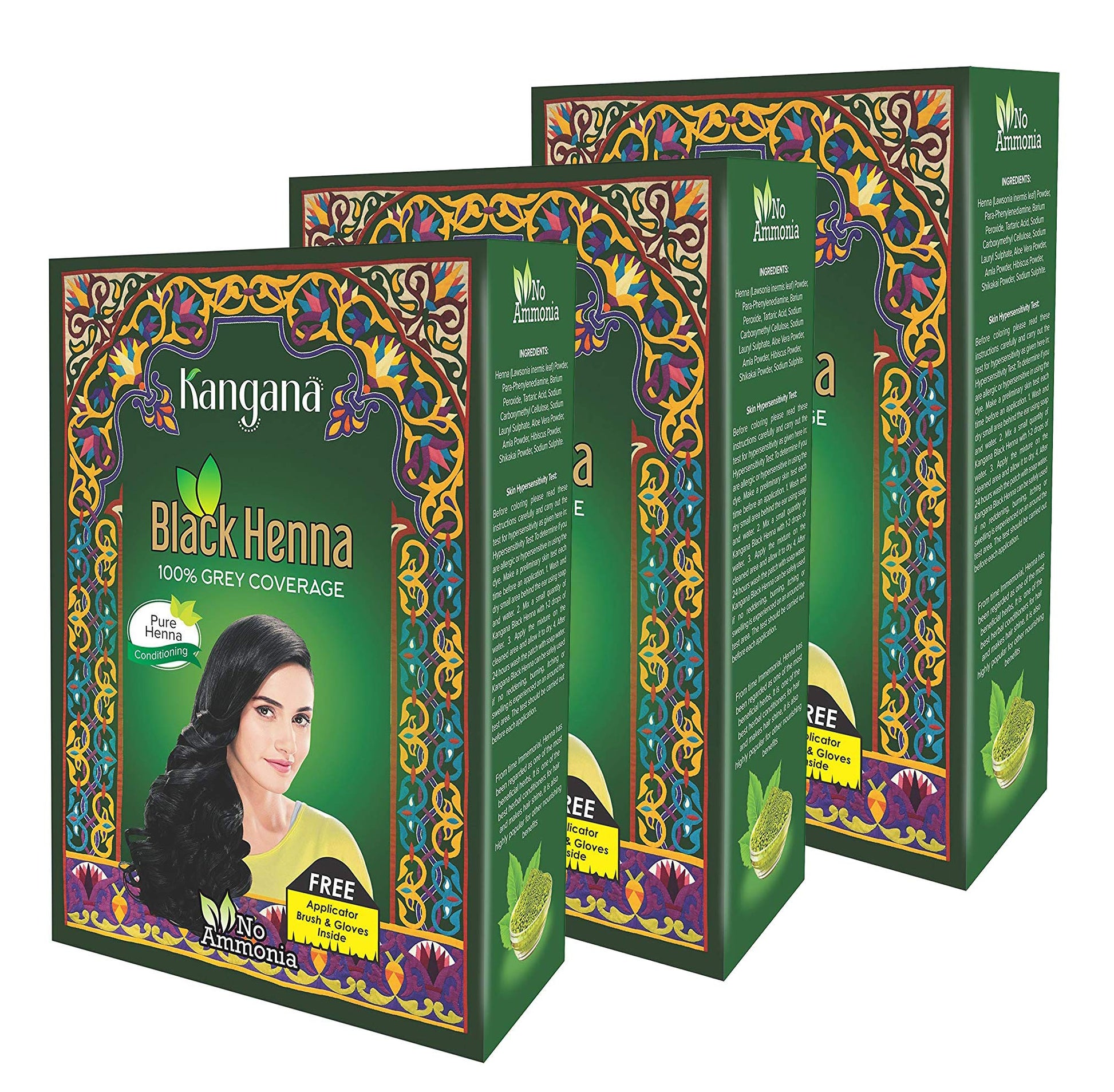 KANGANA Natural Black Henna Powder for Hair Dye/Color, 100% Grey Coverage, Chemical Free, Pack of 3
