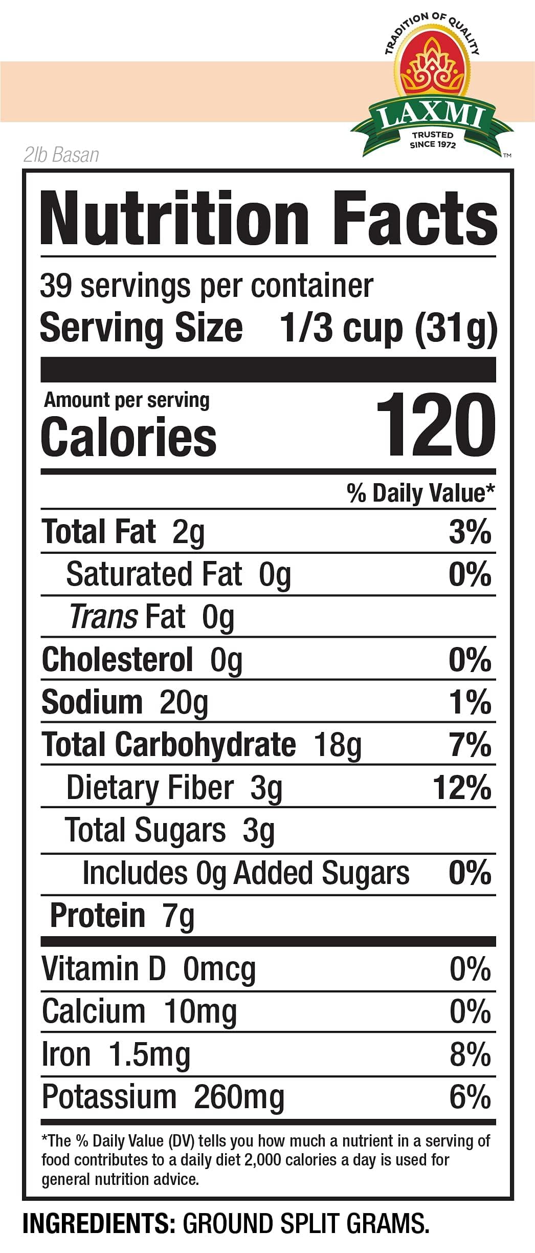 - Our 2lb bag of Laxmi Gram Besan Flour is conveniently sized for home cooking! House of Spices has all of the Traditional Indian Spices and food products you need to get cooking.