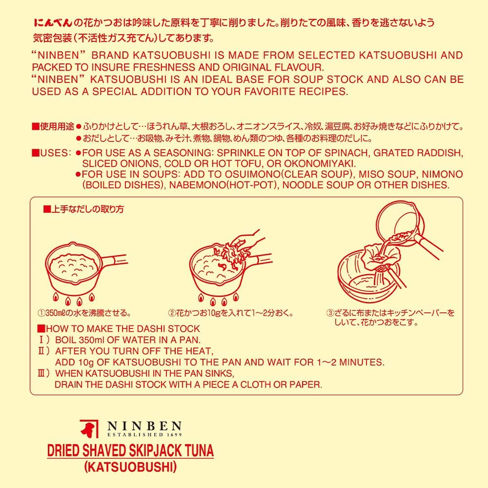 [Ninben] Authentic Dried Bonito Flakes (Hana Katsuo: ) Fresh Pack | Japanese Katsuobushi () | Fresh & Original Flavor | Dried Shaved Skipjack Tuna | Product Of Japan (3.52 Oz)