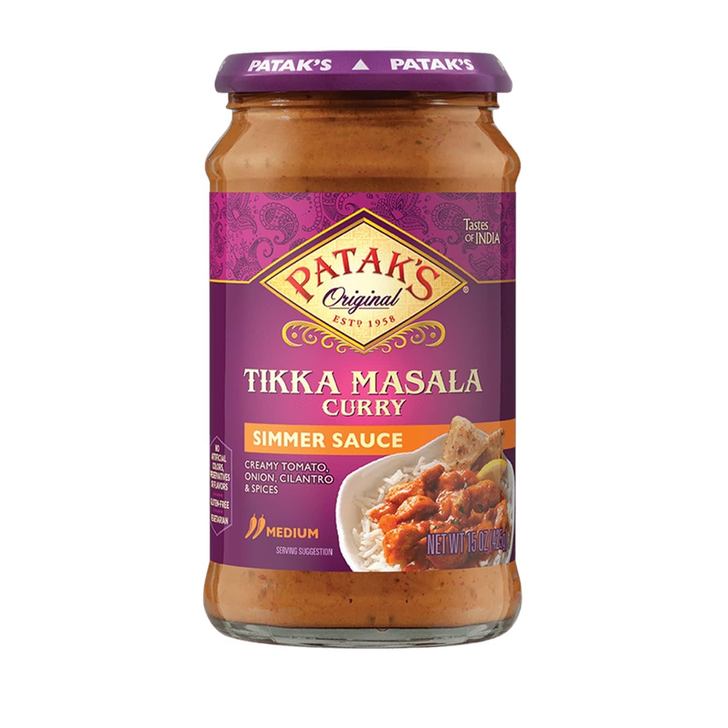 - This sauce has a complex spice blend to bring your authentic curry dish together in just a few minutes. Simply add 1 jar Patak's Tikka Masala Simmer Sauce to 1 lb seared chicken or protein of choice and simmer for 20 minutes. Enjoy with basmati rice or naan. For a veggie option, try with paneer and a handful of fresh veggies. Serves up to 6