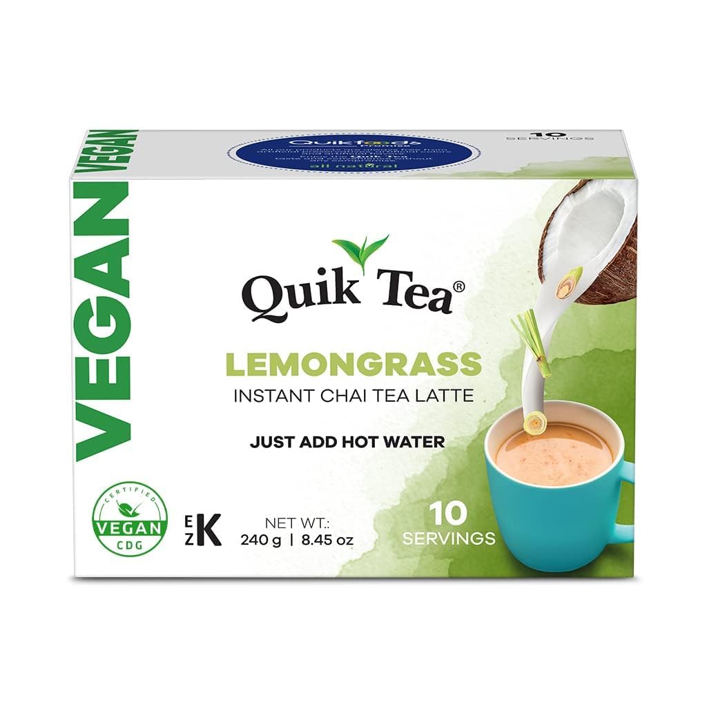 QuikTea Vegan Lemongrass Instant Chai Tea Latte - 10 Count Single Box - Easy Ayurvedic Dairy Free Alternative - All Natural Non GMO Superfood
